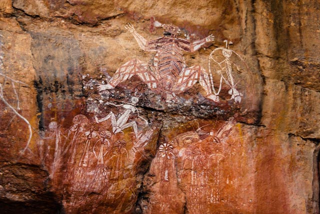 Peinture représentant une légende d’une fille punie par le dieu de l’orage, pour avoir pratiqué l’inceste. Elle est transformée en crocodile!