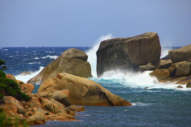 Ces gros rochers en prennent plein la tronche! Mais ça protège notre petite baie.