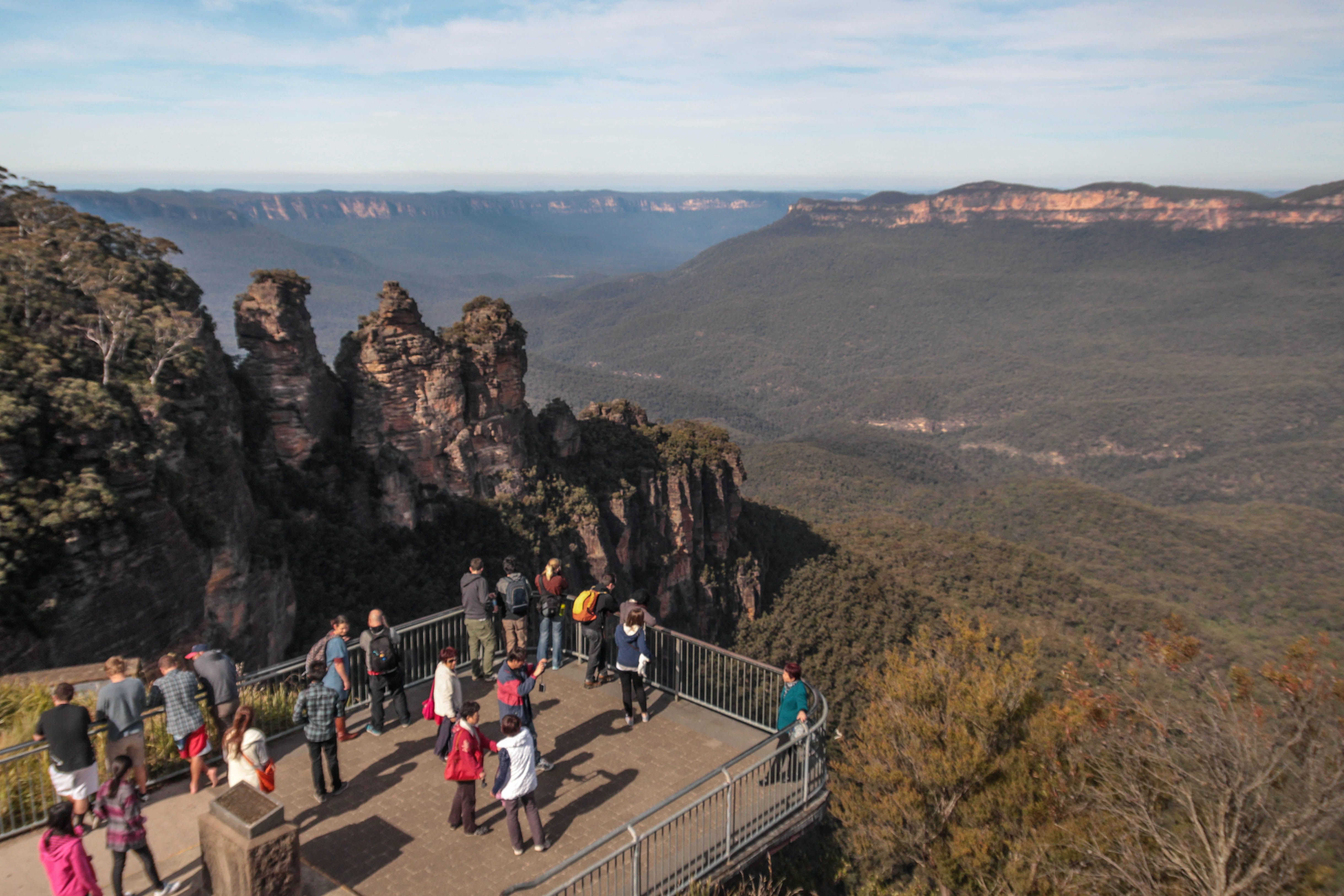 Lauriane, pote française rencontré à Perth, m’a fait l’honneur de passer ses derniers jours en ma compagnie à Sydney. Elle voulais revoir les blues mountains dans de meilleurs conditions que lors de son dernier passage avec ses parents. A savoir: blanc, du blanc et que du blanc. En effet, étant en altitude, il n’est pas rare que ces montagnes soient dans les nuages. Et donc, quand elle y est allée, elle n’a rien vu… juste du blanc.