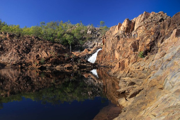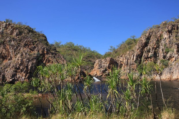 Beaucoup de gens sont déçus par Edith Falls. En effet, près du parking il y a un agréable bassin alimenté par une chute d’eau, une belle pelouse, les gens s’y baignent. Ca sent les vacances, c’est sympa, mais… c’est un peu trop aménagé et un peu trop peuplé (disons une vingtaine de personnes) pour l’Outback australien. Et surtout pas de quoi justifier de venir jusqu’ici.