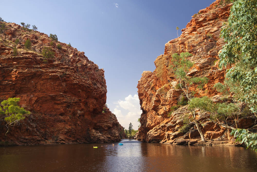 Les Mac Donnell Ranges sont des montagnes assez singulières car alignée comme le long d’une faille. Un peu en altitude et moins aride, il y règne toujours une température extrêmement chaude. Nous y arrivons avec la surprise d’un pneu crevé. Apres un pénible session « Changement de Roue », je rentre a Alice Springs pour demander au loueur une autre roue de secours. Je laisse donc mes amis visiter Stanley Chasm sans moi…
